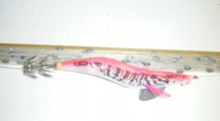 イカ引きには、餌の代わりに、写真(左・右下)のようなエギングを使うそうです。エギングとは、擬似餌のことです。いろんな色や形のエギングがあるんですね。ギザギザのトゲがいっぱいあるところに、イカの足を引っ掛けて、釣りあげるのが、イカ引きの醍醐味だそうです。