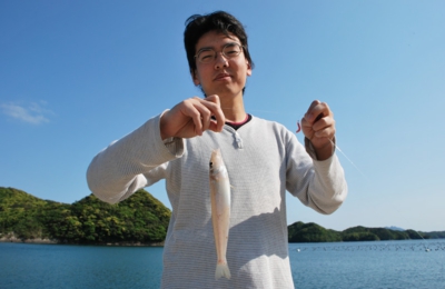 しばらくして息子が「反応が無いね」と言うので、交代してゆっくりリールを巻くと、コツコツと魚の反応が。「魚がきてるよ」と再度、息子にバトンタッチ。