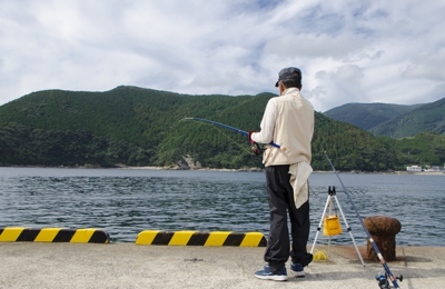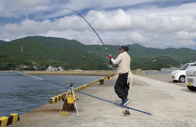 今回取材に訪れた曲崎は、夕方に小アジを釣り、暗くなるとそれをエサに電気ウキの仕掛けでヤリイカが釣れ、10月を過ぎるとアオリイカのジギングも盛んに行われている場所です。