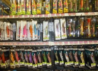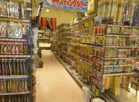 広い店内に入って右半分ほどが釣具コーナーです。かなりのスペースです。