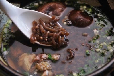 この料理、韓国の観光客の方にも人気があります。不思議に思い韓国の知人に尋ねたら「韓国ではチャプチェと呼ばれる春雨と野菜を炒めた料理があり、それに使用する春雨はサツマイモのでんぷんから作られているので「ろくべえ汁」も違和感無く食べられる。」ということでした。