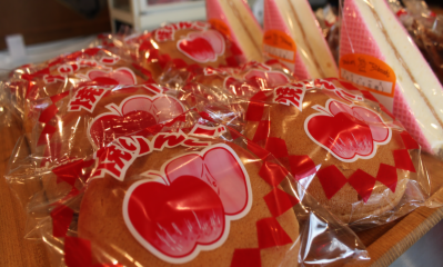 昔はいろいろなパッケージデザインがあったのですが、坪内パン屋の顔といってもいい「チョコレートパン」「焼きリンゴ」以外は透明のパッケージに変わってしまいました。コストの問題や、昔と違い原材料の表記シールを貼るために透明の袋になってしまったそうです。「チョコレートパン」と「焼きリンゴ」だけは、周りの方の声もあり、昔ながらの姿で店頭に並んでいます。また最近では、夏と冬の帰省客へ向けて、人気がある「チョコレートパン」「マヨネーズパン」「焼きリンゴ」を小型にして「青春の思い出3点セット」というネーミングで販売し、大好評だったそうです。聞いただけでウキウキします!次回、販売する時は是非、ゲットしたいと思います。