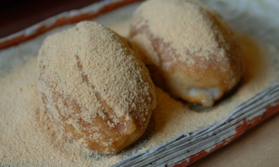 担の食べっぷりがあまりにいいのか、ご主人から「最近新しく作ったんでどうぞ」と言われ、そばだんご(450円)もいただくことに。そばがきにきなこをまぶしていて、食感は少しやわらかめのお餅といったところ。きなこの香ばしさに、ひっそりと隠れたかのような、つつましいそばがきの風味。温かいので、これからの寒い季節にぴったり。