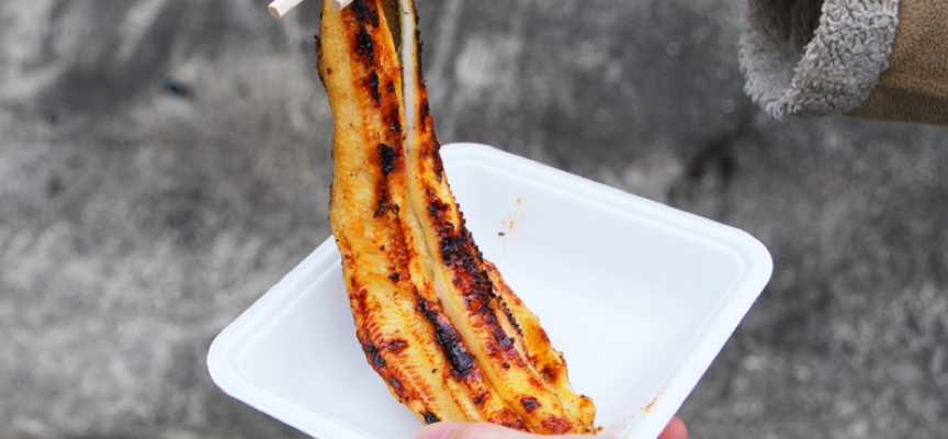 あなご漁師さんが自信満々で手渡してくれたのは、炭火で焼いたばかりの丸々一匹のあなごでした。意外と知られていませんが、長崎県のあなご水揚げ量は全国一位で、その殆どは対馬での水揚となっています。今回は、2月25日に開催された対馬あなご祭りから、とっておきの島グルメの話題をお届けします。