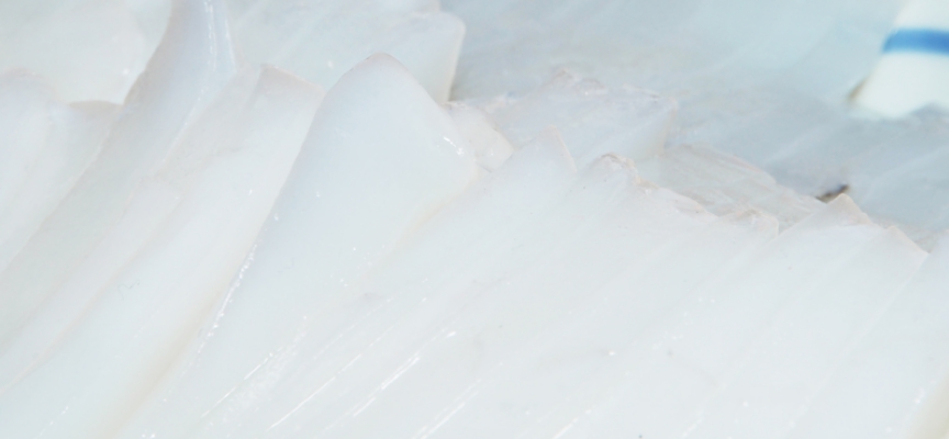 ミズイカ(アオリイカ)のお刺身は、身が厚く甘くねっとりしてとっても美味。こんなに新鮮で美味しいイカが食べられるのも対馬ならでは。