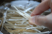 各家庭で入れる具材もダシもいろいろ。島原の郷土料理のイメージが強いですが、長崎市街地の飲食店でも、味わえるところがあります。具材は餅、鶏肉、しいたけ、ごぼう、レンコン、山芋、春菊、かまぼこ、あなご、卵焼きなど。ダシは、かつおだしベースのところが多いかも。私も、さっそく作ってみることにしました。私の中でのマストアイテムは3つ。まず、ごぼうです。具雑煮のごぼうは、細いせん切りのイメージだったので、やってみました。