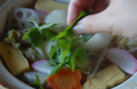 彩り良く、にんじんを入れてみることに。具雑煮というだけあって、10数種類の具材がたっぷり入るのが特徴かも。各家庭によって味も具材も異なります。