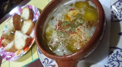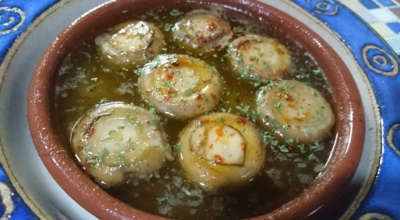 五島で唯一のバル「えみ庄」での冬の人気メニューの一番は「アヒージョ」です。アヒージョ(ajillo)はスペイン語でニンニク風味の意味だそうですが、オリーブオイルに「小さな村」の農園で育てている鷹の爪と、ニンニクをたっぷりと入れて、アンチョビペーストをちょこっと加えて、グツグツとアチアチになるまで煮立てたら、魚介類から野菜まで、自分が好きなものを入れれば、ハイ!出来上がり。