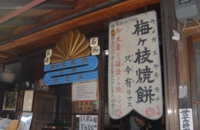 グルメ紹介なのに、なかなか出てこないじゃんと思った方、お待たせしました~! 大徳寺跡に来たら、ぜひ味わっていただきたいスイーツがこちら、老舗 菊水大徳寺さんの梅ケ枝焼餅です。素敵なお店の看板に、しばし視線が釘づけになること間違いなし。