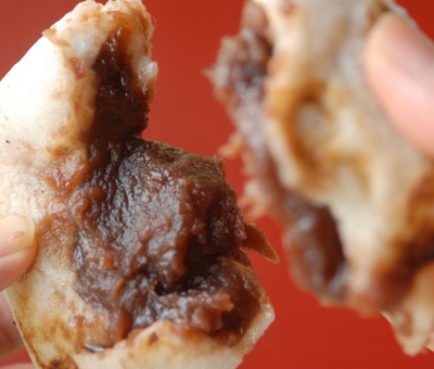 4個で600円とはなんとも良心的プライス。しかも、注文後、目の前で焼いてくれます。餡を素早く餅でくるんで、焼き型に入れ、じんわりと焼いていく。もしかして、出来上がるまで5分もかかってないのでは!?と思うほどの職人技です。香ばしいかおりとともに、いつの間にか、お餅がぷっくりと丸く盛り上がってくる。カタチからして「そりゃもう、うまかろう」と思わせる、説得力あるフォルムに拍手。