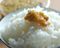 かかし隊が守るお米を食べたかったですが、どこで販売しているのかがわからなかったので、長崎県産のひのひかりに、長崎ならではのご飯の友を添えてみました。長崎のスーパーに必ずといっていいほど置いてある「もろみ納豆」です。写真のは、南島原市で作られたもので、大麦・裸麦・大豆に、水あめや醤油、生姜をプラスした甘じょっぱい味。これならご飯、何杯でもいけると思わせてくれる、期待を裏切らない美味しさです。ひのひかりは、程よい粘りと甘みのバランスがいい。最近は、人気急上昇中の長崎ブランド米・にこまると互角の戦いを市場で繰り広げているらしいですが、米好きな私は、どちらも大好き♡ 白黒つけられません!