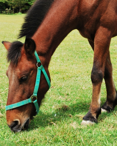 対州馬は対馬在来種の小型の馬で、体高(肩までの高さ)は125cm程度です。サラブレッドは170cm程ありますので、いかに小さいかわかりますね。