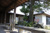 さらに中へ入って行くと、立派なナンヨウスギの木が目に入ってきました。このナンヨウスギは、旧所有者の薩摩氏の先祖が台湾から鉢植えとして持ち込まれたもので、かつては2本あったそうですが、1本は台風で倒木したそうです。落ちている葉を使って、引っ張り合いっこ遊びもできますよ。大きな木の下で、ベンチに座り風情豊かな建物を眺めているだけで心が落ち着くようです。ベンチ横にある体験コーナーでは、五島伝統民芸バラモン凧を気軽に作ることができる「ばらもん絵付け体験」やオリジナルハンカチを作れる「ハンカチ草木染体験」があります。どちらとも要予約になります。世界に1つだけの五島民芸品を作ってみるのも楽しそうですね。