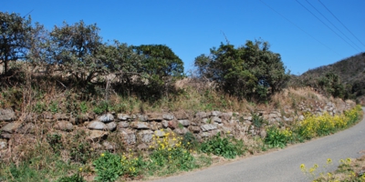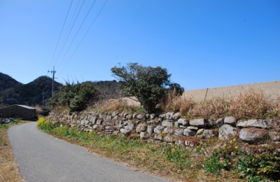 気持ちよく晴れた小春日和の中、豊玉町の廻(まわり)地区にある池田の浜を訪れました。今回の島の細道は、江戸時代に土木の名匠として知られていた増田定七が築き、今も残る築堤を紹介します。
