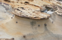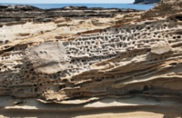 このバス停の奥が砂岩で出来た奇岩郡がある場所で、岩が波や風で削られた形はまるで自然の芸術。