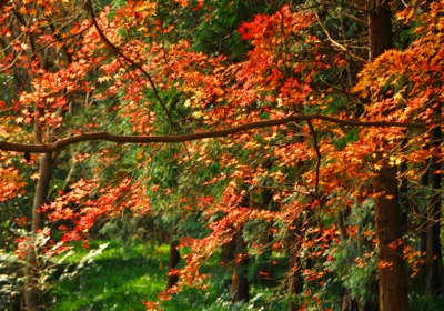 私が訪れたのは11月19日。平日、月曜日の午前中とあって他に来園者は無く、色づいた紅葉のジュウタンの上をのんびりと散策できました。柵の向こう側は栗林が広がっており、散策路に殻つきの栗が落ちていましたよ。