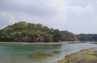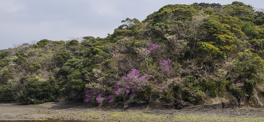 自生しているゲンカイツツジを見るため最初に訪れたのは、美津島町のあそう湾にある狭瀬戸(せませと)。