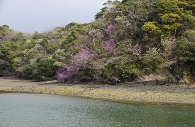 訪れた時間帯は干潮時だったので、ゲンカイツツジのピンク色が海面に映える様子は見られませんでしたが、入り組んだリアス式海岸のあちこちに咲くゲンカイツツジはとてもきれいでした。