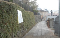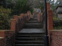 墓地というとなんとなく全体的にグレー一色の世界が広がりがちですが、石段にレンガ塀が、まるで異国に来たかのようです。ココが、私のオススメの細道。