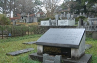 ロシア人墓地は入れませんでしたが、向かいの墓地には入られたので、ちょっと失礼することに。ずんずん足を進めてみると、石碑発見。風化して墓石の文字が読めなくなる前にと、墓石の位置と名前が記された石碑でした。