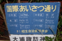 あ、あいさつ看板が!! 国際あいさつ通りは続いていたんだ。