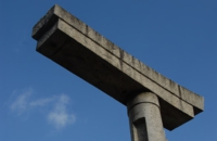 ほぼ真っすぐの道を前へ進むこと約5分、鳥居が見えてきました。山王神社の二の鳥居です。長崎人には「一本柱鳥居」といった方が、通りがいいかも。原爆投下前は4つあった鳥居。そのうち、一の鳥居(現在は残念ながらなくなりました)と二の鳥居が残りました。
