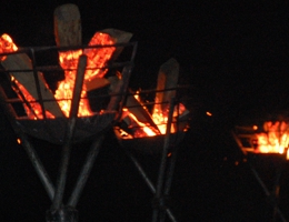 日暮れとともに 周囲を囲んだ幻想的なかがり火が会場の雰囲気を一層盛り上げていました。夕方午後6時からスタートし、深夜0時まで6時間に及ぶステージは、爽やかな風とともに、観光客や地元の家族連れで大賑わい。(もっと少ないと思っていました。ゴメンナサイ)