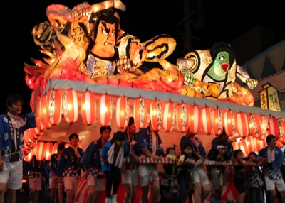 昭和50年代に入り、参加側も見る側も1つになってやれる祭りはないか、福江商工会議所の方々が全国の祭りを研究し、52年の春、青森のねぶたに白羽の矢を立てました。商工会議所を通じて、各方面に協力していただき、中でも青森のねぶた師・石谷進さんの指導のもと、ねぶたを導入する運びとなりました。最初の3年間は、ねぶたを青森から運んできていたそうです。