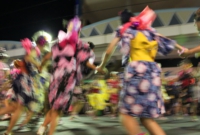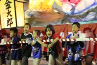 2日目のお昼は、”第5班子どもみこし”に参加してきました。街中を「お賽銭お願いしま~す!」を掛け声をかけながら歩き回りました。小さいみこしを小さい体で抱えてる子ども達を沿道のお客さんたちは微笑ましく見ていました。子どもみこしの他には、五島さのさ・総踊り・炎上太鼓などがありました。