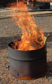 氏子の皆さんがこの1年に頂いたお札や破魔矢など(中には大黒様もありましたが)お祓いをして、火入れの神事です。