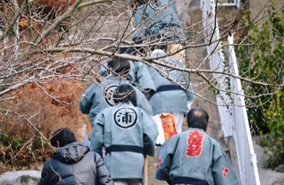 佐賀県唐津市の唐津港からのフェリーが着く、印通寺港(いんどうじこう)の辺りを印通寺浦といいます。ここの青年会の人たちが、毎年1月12日に行っている「お経さん」とよばれる新年のお祭りをご紹介します。