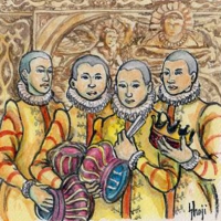 長崎県の世界遺産登録へ向けた活動を行っている推進事務局からお話をいただいて、ウェブサイト「おらしょ物語」の挿画を担当したんです。こんな感じで描いています。 お時間があったら覘いてください。