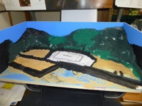 このときに見た様々な資料に影響を受けて、五島から世界遺産候補に挙がっている五輪教会と江上教会のジオラマを製作しました。五輪教会の製作過程です。まず発泡スチロールなどでベースを作ります。