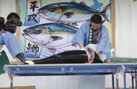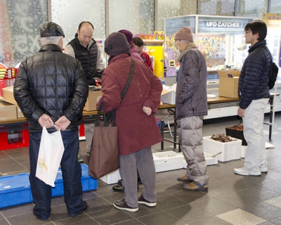 11月22日に開催されたオープニングイベントではマグロの解体ショーと試食会が行われ、対馬のブランド魚「トロの華」が無料で試食できるとあって長蛇の列が出来るほどの人気でした。