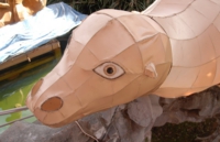 パンダと同様、湊公園にあった動物ランタン。なぜゴリラとシロクマのチョイスになったのか不明ですが、こちらも迫力満点。若者男子がこわごわと横に座り、撮影をしていました。その気持ち、わかる……。