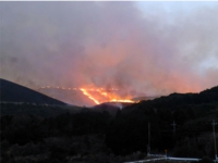 この日は20度近くまで気温が上がり、最高の山焼き日和(?)でした。夕方6時に160人の消防団員がサイレンの音とともに一斉点火。その5分後にはもうこんな状態まで炎と煙が広がりました。圧巻!