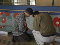 今回取材にお邪魔させていただいた時は、2月14日から始まる「椿まつり」に合わせて、福江港の大波止ターミナルを「ゆうなぎ」の通所者さんたちと一緒に、椿の貼り絵で飾り立てている真っ最中でした。