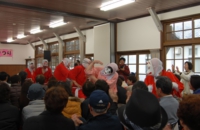 催しは、北側展示館の多目的教室で行われていました。約50名収容できる教室ですが、ざっと見ても50名以上は確実にいる大盛況ぶり。フラダンスや津軽三味線、郷土芸能のひょっとこ踊りと演し物も満載。