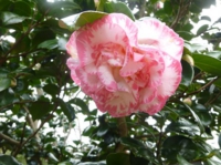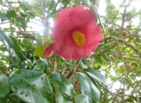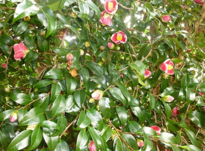 お出迎えするする椿。エントリーNo.1はこの椿です。その名も「京錦」