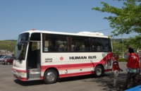 三川内の会場周辺は、細道が多いので、無料シャトルバスを利用することをオススメします。国道35号線沿いにある三川内焼伝統産業会館の駐車場に車を停めると、この無料シャトルバスがお出迎え。ラクラク~。