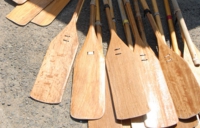 会場内をウロウロ。すると、ペーロンの道具があちらこちらに置いてありました。こちらはおなじみの櫂。よくよく考えてみると、この櫂を使って船が進むのだから、ヒトの力も捨てたモンじゃないですね。