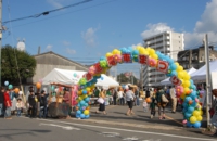 風船で作られたアーチが夢あふれます。とにかくファミリー客が多かった。お子さんに風船とかプレゼントしていたみたいだし。忘れ物傘無料配布や電車と綱引きなど、ココでしか体験できないイベントや催しが一番の魅力かも。