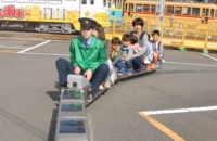 地味といったら失礼かもですが、さりげなく置いてあったこの運転レバーに人気が集中。なんかガチャガチャ動かしてみたい。わかります! 最初は、子ども1人じゃ危ないからと手伝っていたママが、気がつくと自分が夢中になっていた、そんな場面でしょうか。「路面電車まつりあるある」!?
