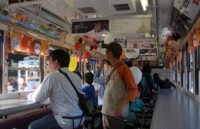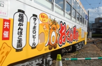 オレンジカラーがモチーフなのか、車内はキュートな装飾でいっぱい。冬はおでん、夏はビールと、飲み助のハートをわしづかみする電車が次々とお目見え。