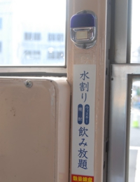押しボタンと水割り飲み放題の見事なコントラスト。子どもは竜眼王やちくわ王妃のイメキャラに夢中だけど、大人は「水割り飲み放題」の文字に視線が釘付けになった方多数でした。