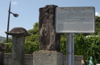 子安大師堂へたどり着くまでに、墓碑や供養塔群などの史跡多し。写真は渡鳥塚(わたりどりづか)といわれる句碑です。1813年(文化10)、長崎の俳人・平田祥禾(しょうか)ら当時の蕉門俳人が、芭蕉翁120回忌と去来110回忌に建てたそう。馬町墓地にあったのを、こちらへ移したらしい。去来は、あの長崎出身の向井去来です。