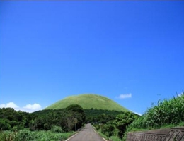 ならば、「鬼岳が見える景色」です。五島のシンボル「鬼岳」ただし、「鬼岳」がパワースポットという意味ではなく、「鬼岳が見える景色」全部が私にとってのパワースポットなのです。鬼岳は、福江島の東部にそびえる標高315mの山。全山が芝生に覆われていて美しい臼状をしています。島の小学校の遠足は決まって鬼岳でした。てっぺんまで登り、大声で叫んで走り回っていました。山に登るのもとっても気持ちいいのですが、私は昔から、遠くから眺める鬼岳が大好きです。観る場所によって、一こぶだったり、二こぶだったりして、色んな景色になります。鬼岳の緑と空の青がなんともたまりません。元気をもらいたい時は、鬼岳が観えるコースをドライブします。どっしりと、優しく佇んでいる鬼岳を観ると、癒されて気分爽快です。いつか私が家を建てる時は、絶対に鬼岳が見える場所と思ってます。