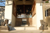 今回のメイン会場となる祠。一対の狛犬、お賽銭箱とシンプルイズベストな佇まい。パッと見たところ普通に見えますが……。生目八幡宮は目の神様で、本宮は宮崎県にあるそう。祈願のしかたは、年齢にひとつ加えた数の「目」の文字を書いて奉納すると目が良くなると言われています。