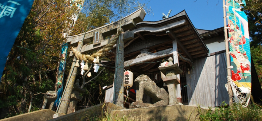 秋晴れの中、海沿いにドライブしていたら偶然、お祭りをしている神社に出くわしました。聞きなれない「入江神社」という社号を不思議に思い、地元の方々に神社の由来をお聞きすると、遠く広島から分祀された神様だということでした。