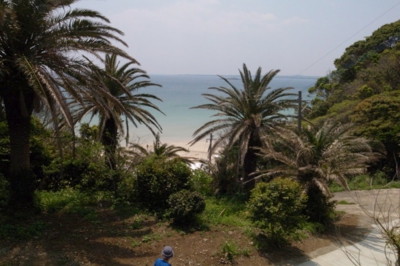 売店から坂道を下っていくと、海が見えてきます。「そうそう、海もきれいやし、ときどき波が高くなって、その波にもまれて遊ぶのがおもしろいじゃん!」だそうです。波が高い、と言っても、本土の人から見ると、そのおだやかさに驚くのでは?と思います。